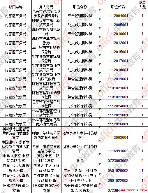 截止到24日8時(shí),工作地點(diǎn)在內(nèi)蒙古19個(gè)職位無(wú)人報(bào)考。具體職位如下:
