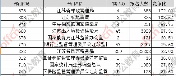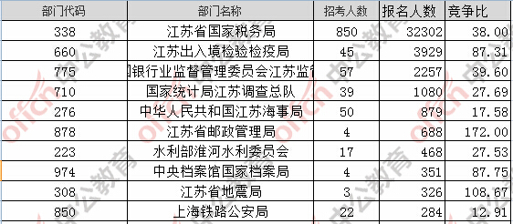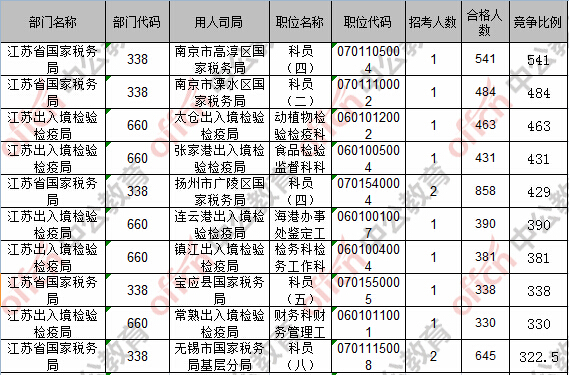 報(bào)名通過審核人數(shù)前十的職位主要集中在江蘇省國(guó)家稅務(wù)局、江蘇出入境檢驗(yàn)檢疫局,具體信息如下: