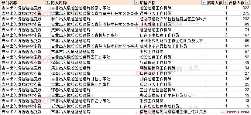 吉林省出入境檢驗檢疫局報名人數(shù)最多前20崗位