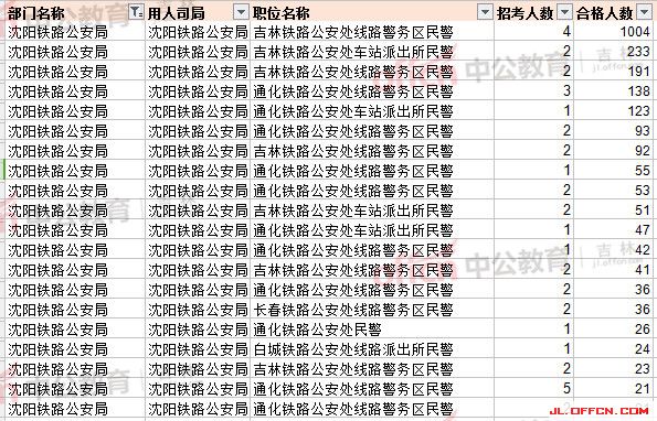 沈陽鐵路公安局報名人數(shù)最多前20崗位