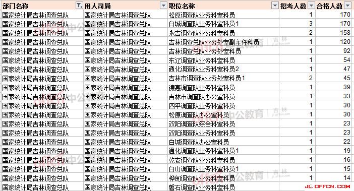 國家統(tǒng)計局吉林調(diào)查總隊報名人數(shù)最多前20崗位