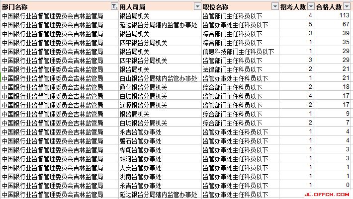 中國銀監(jiān)會吉林監(jiān)管局報名人數(shù)最多前20崗位