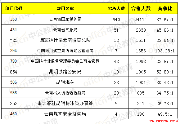 為幫助廣大考生更清晰地了解今日報名情況,云南中公網(wǎng)校整理了審核通過人數(shù)部門排名,供廣大考生參考: