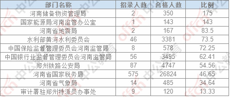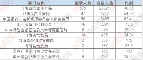截止24日8時,通過審核人數(shù)前三位的部門依次是:河南省國家稅務局、鄭州鐵路公安局,中國銀行業(yè)監(jiān)督管理委員會河南監(jiān)管局,三部門通過審核總人數(shù)35006人,占通過審核總人數(shù)的86.84%。
