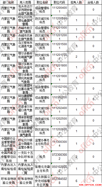 截止到24日17:30時,工作地點在內(nèi)蒙古17個職位無人報考。具體職位如下: