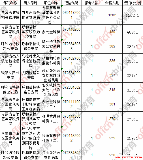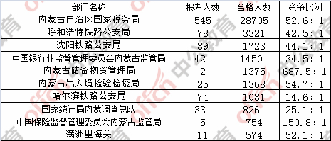 為幫助廣大考生更清晰的了解今日報名情況,內(nèi)蒙古中公網(wǎng)校整理了審核通過人數(shù)前十位的部門,供廣大考生參考: