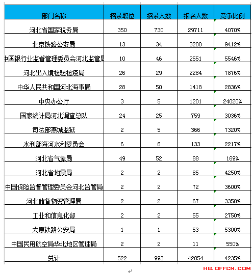2017國考河北省地區(qū)所有職位報名情況下載表格查看: