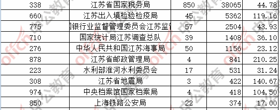 報名通過審核人數(shù)前十的職位主要集中在江蘇省國家稅務(wù)局、江蘇出入境檢驗(yàn)檢疫局,具體信息如下: