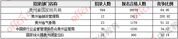 截至報名結束,貴州招錄部門中各大部門均有人員報考。