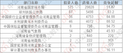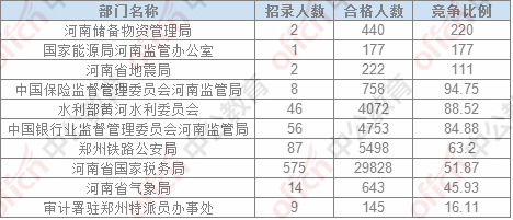 截止24日17:30,通過(guò)審核人數(shù)前三位的部門(mén)依次是:河南省國(guó)家稅務(wù)局、鄭州鐵路公安局,中國(guó)銀行業(yè)監(jiān)督管理委員會(huì)河南監(jiān)管局,三部門(mén)通過(guò)審核總?cè)藬?shù)40079人,占通過(guò)審核總?cè)藬?shù)的86.08%。