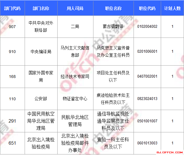 合格人數(shù)前十的職位主要集中在外交部、民盟中央、商務(wù)部等部門,具體信息如下: