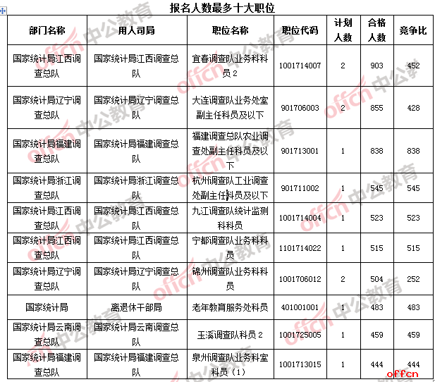 2017國考報名結(jié)束:統(tǒng)計局過審45491人 平均競爭比51:1