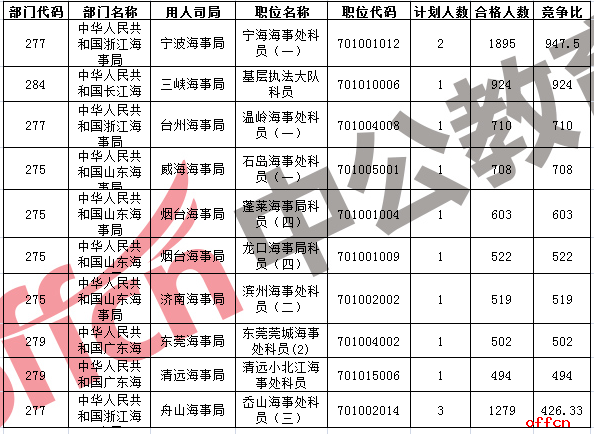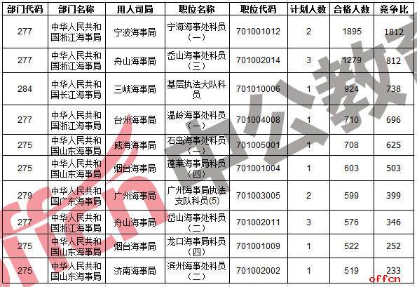 2017國考海事局15個部門共提供659個職位,招錄900人。截至24日17:30,總報名審核通過人數(shù)為32167人,競爭比例為35:1,下面是中公網(wǎng)校統(tǒng)計的海事局報名情況,供考生參考: