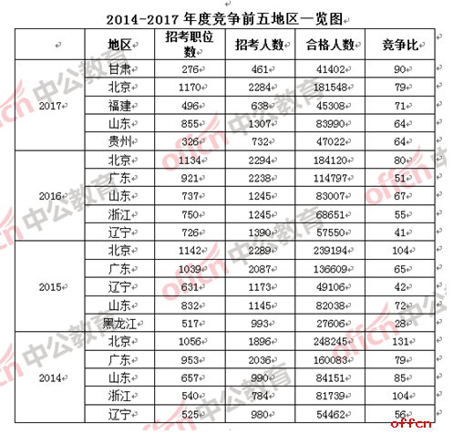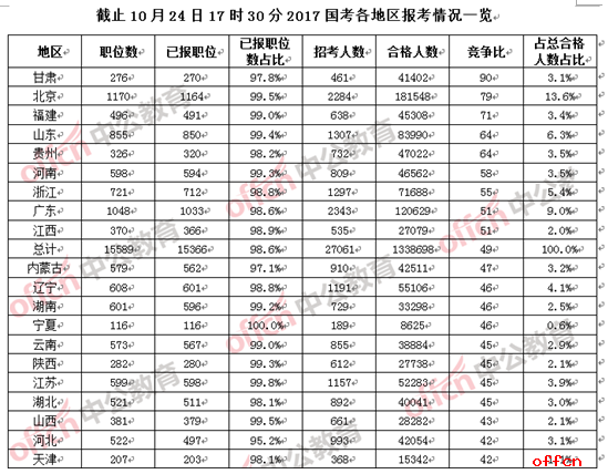 2017國考報名各地排行榜 中西部邊遠地區(qū)競爭激烈“白熱化”