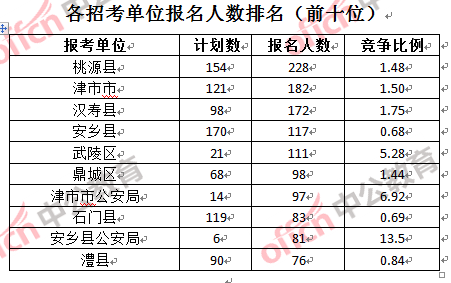 為幫助廣大考生更清晰的了解報名情況,中公教育整理了常德市各招考單位的報名人數排名以及競爭比例排名,供廣大考生參考: