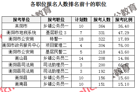 一、衡陽公務員報名人數:各職位分析
