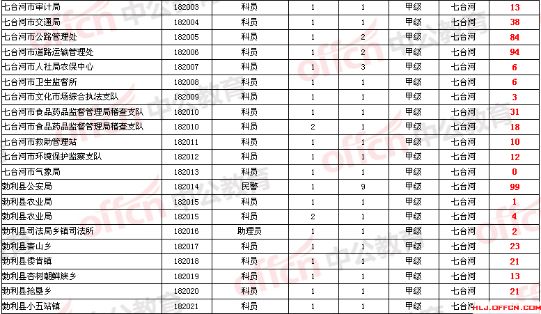 2014年黑龍江公務(wù)員七臺河公務(wù)員考試繳費人數(shù)統(tǒng)計表[5月18日]