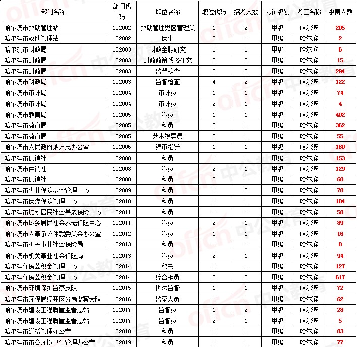 【哈爾濱】2014年黑龍江省公務(wù)員考試?yán)U費(fèi)人數(shù)統(tǒng)計(5月19日)