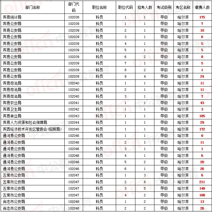 【哈爾濱】2014年黑龍江省公務(wù)員考試?yán)U費(fèi)人數(shù)統(tǒng)計(jì)(5月19日)