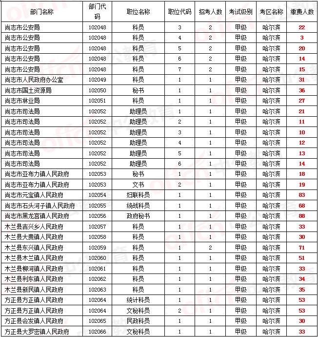 【哈爾濱】2014年黑龍江省公務(wù)員考試?yán)U費(fèi)人數(shù)統(tǒng)計(jì)(5月19日)