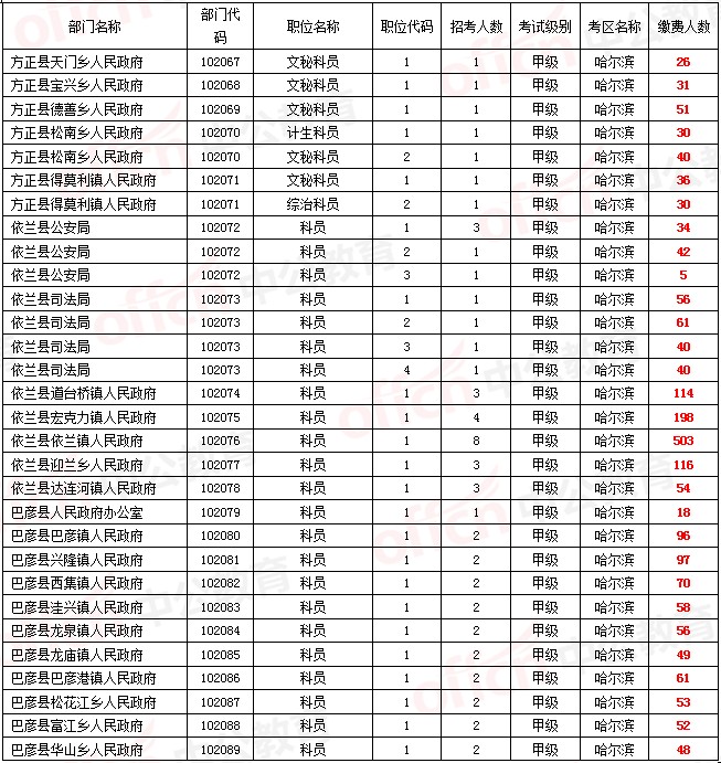 【哈爾濱】2014年黑龍江省公務(wù)員考試?yán)U費(fèi)人數(shù)統(tǒng)計(jì)(5月19日)