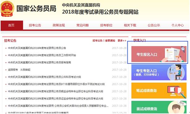 2018國家公務(wù)員考試于10月30日開始報名,中公教育專家在第一時間為考生總結(jié)今年國家公務(wù)員考試報名系統(tǒng)的使用方法以及一些填寫注意事項,參照此步驟,考生必然會順利報考。
