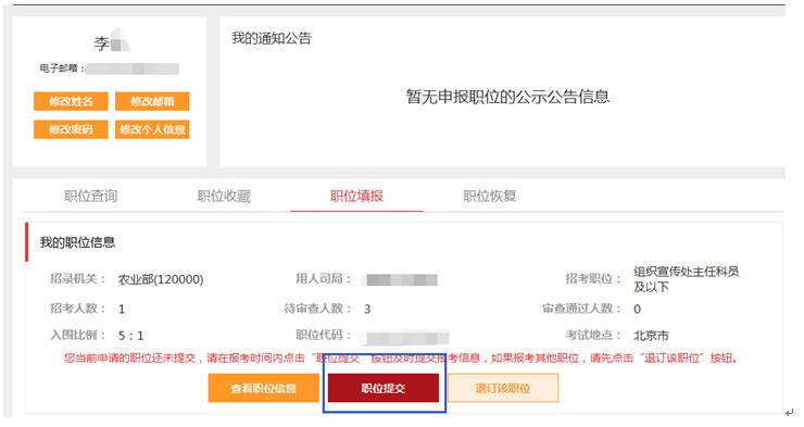 點(diǎn)擊“職位提交”之后會出現(xiàn)審核不通過的情況,就需要點(diǎn)“退訂該職位”,之后重新選擇。