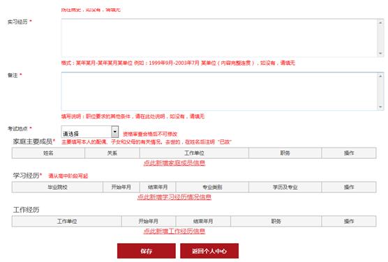 完善個人信息是一項“龐雜的工程”,需要考生準備很充分很充足的資料,有*標注的是必須填寫的內容,考生要一定要如實填寫,將各類證件備齊,并確定好具體日期。