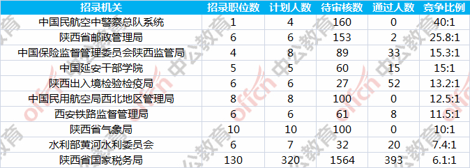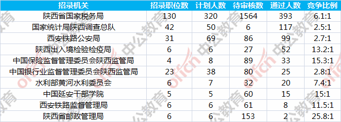 截至到31日9時(shí),通過審核人數(shù)前三位的部門依次是:陜西省國家稅務(wù)局、國家統(tǒng)計(jì)局陜西調(diào)查總隊(duì)、西安鐵路公安局,三部門通過審核總?cè)藬?shù)達(dá)609人,占通過審核總?cè)藬?shù)的79.4%。