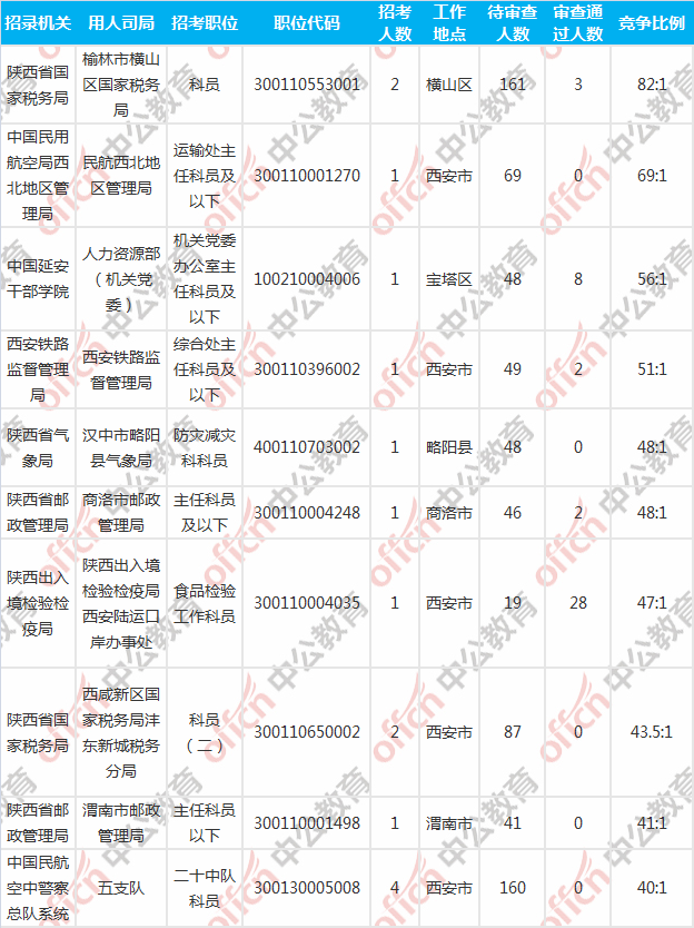 [31日9時]2018國考報名數(shù)據(jù):陜西767人過審 最熱職位82:1