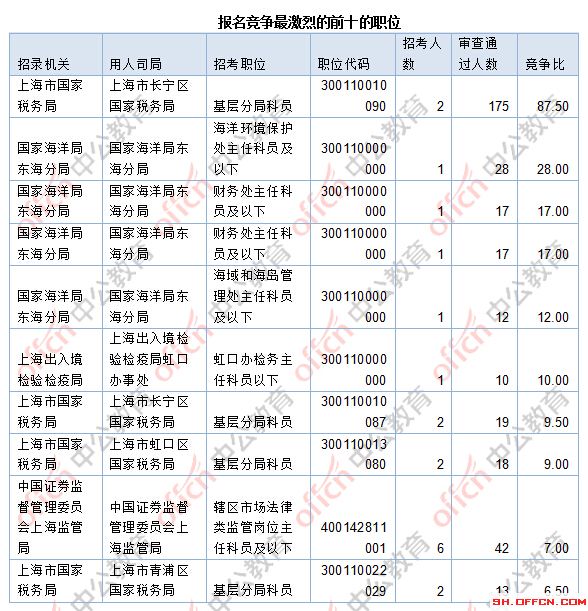 [31日10時]2018國考報名數(shù)據(jù):上海737人過審 最熱競爭比87.5:1