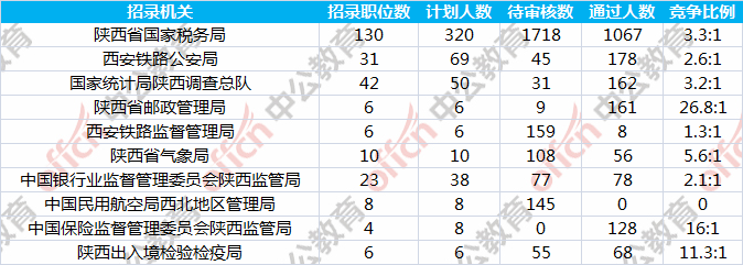 截至到31日18時,通過審核人數(shù)前三位的部門依次是:陜西省國家稅務局、西安鐵路公安局、國家統(tǒng)計局陜西調查總隊,三部門通過審核總人數(shù)達1407人,占通過審核總人數(shù)的71.06%。