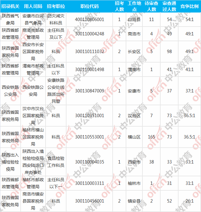 [31日18時(shí)]2018陜西國考報(bào)名人數(shù)統(tǒng)計(jì):1980人過審 最熱職位54:1