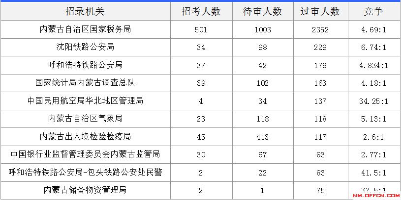 [31日18時(shí)]2018國(guó)考報(bào)名數(shù)據(jù):內(nèi)蒙古3843人過(guò)審 最熱職位競(jìng)爭(zhēng)129:1