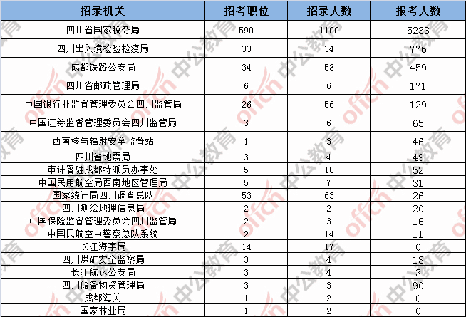 為幫助廣大考生更清晰的了解今日報名情況,四川中公教育整理了已審核通過人數(shù)的部門,此數(shù)據(jù)供廣大考生參考: