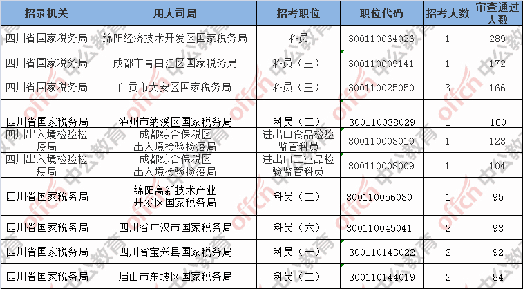 第三日報名通過審核人數(shù)前十的職位主要集四川省國家稅務(wù)局等部門,具體信息如下: