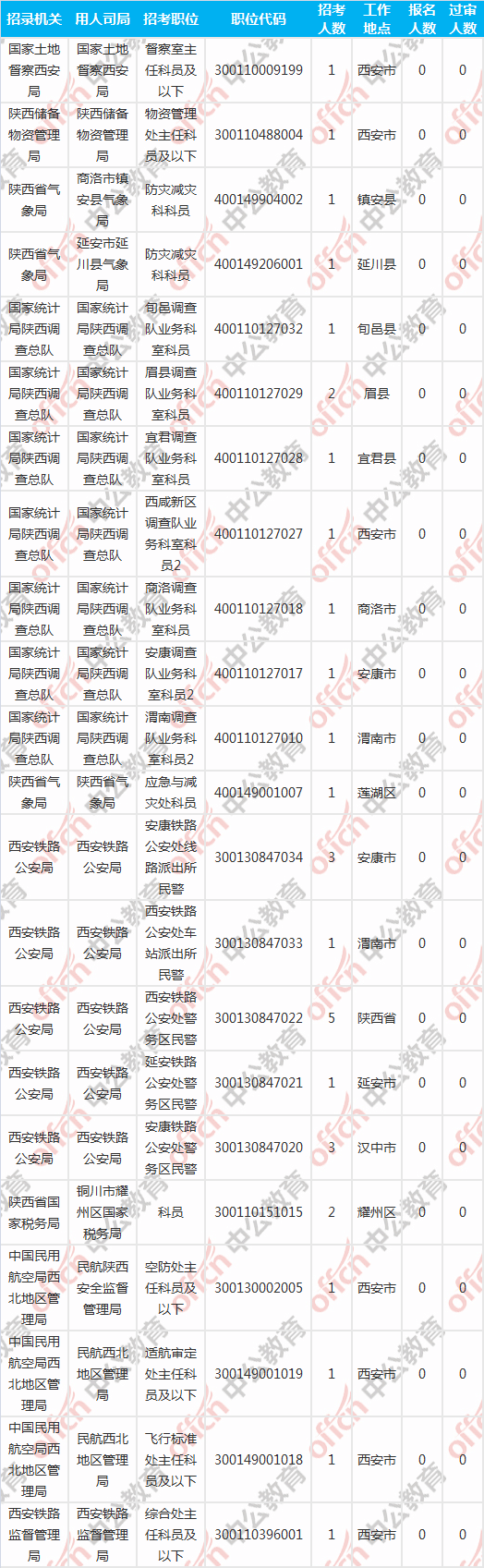 [1日16時]2018陜西國考報名人數(shù)統(tǒng)計:陜西3899人過審 最熱職位119:1
