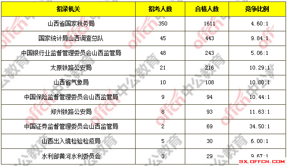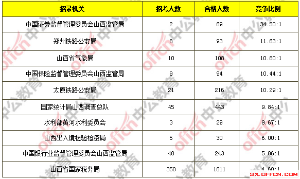 截至11月1日16時,據(jù)中公網(wǎng)校統(tǒng)計,國考職位中工作地點在山西的職位通過審核總?cè)藬?shù)為3009人,和去年同期相比合格人數(shù)減少了309人,截止目前共有44個職位無人報考,平均競爭比例為5.67:1,和去年同期競爭比基本持平。