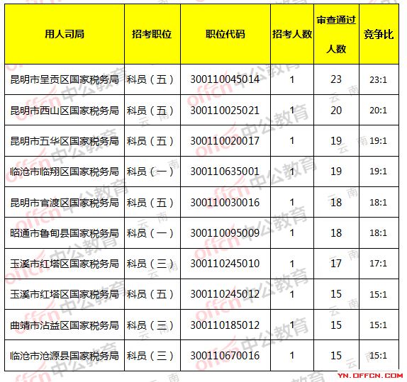 報(bào)名通過(guò)審核通過(guò)人數(shù)前十的職位