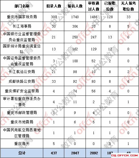 【1日16時】2018重慶國考報名人數(shù)統(tǒng)計:重慶2847人報名 最熱職位44:1