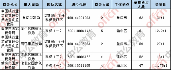截止11月1日16時2018國考重慶地區(qū)競爭最激烈五大職位