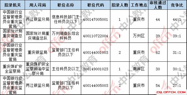 競爭最激烈職位銀監(jiān)會占三席 競爭比44:1