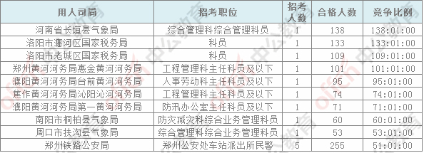截止到11月1日16時,競爭比例的職位為河南省長垣縣氣象局的綜合管理科綜合管理科員一職位,招錄1人,截止到11月1日16時通過人數(shù)為138人,報名開始僅兩日就已經(jīng)進(jìn)入“百里挑一”了。
