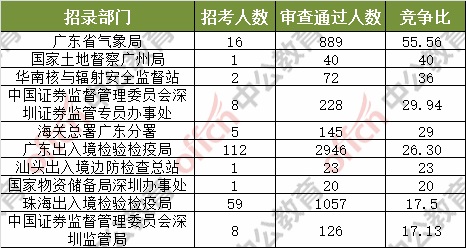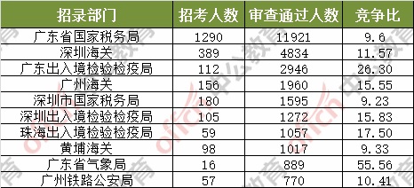 截止到2日16時,通過審核人數(shù)前三位的部門依次是:廣東省國家稅務局、深圳海關(guān)、廣東出入境檢驗檢疫局,三部門通過審核總?cè)藬?shù)達19701人,占通過審核總?cè)藬?shù)的62.2%。
