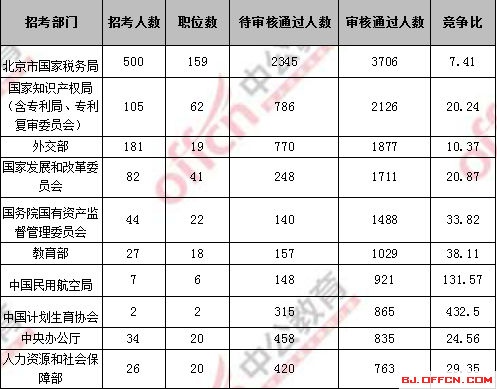 2018國考北京地區(qū)過審人數(shù)最多十大部門