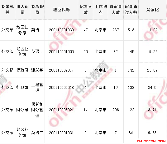 外交部審查通過最多前五職位