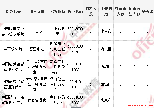 2018國考北京地區(qū)無人報考職位(5個)