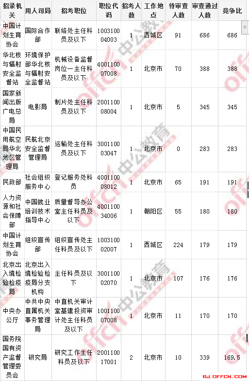 2018國考北京地區(qū)競爭比例最多十大職位