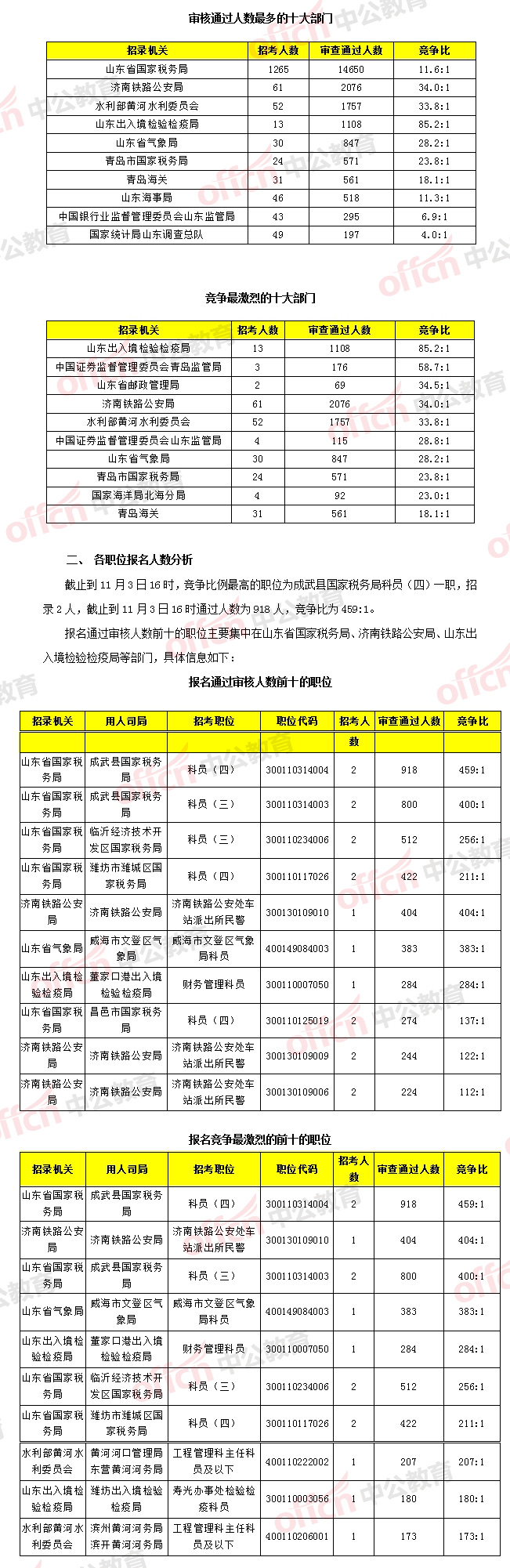 [3日16時(shí)]2018國(guó)考報(bào)名數(shù)據(jù):山東23499人過審 最熱職位高達(dá)459:1 無(wú)人報(bào)考職位仍有43個(gè)