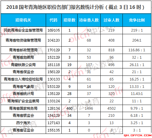 【3日16時(shí)】2018青海國(guó)考報(bào)名數(shù)據(jù):9337人報(bào)名,最熱競(jìng)爭(zhēng)比615:1!